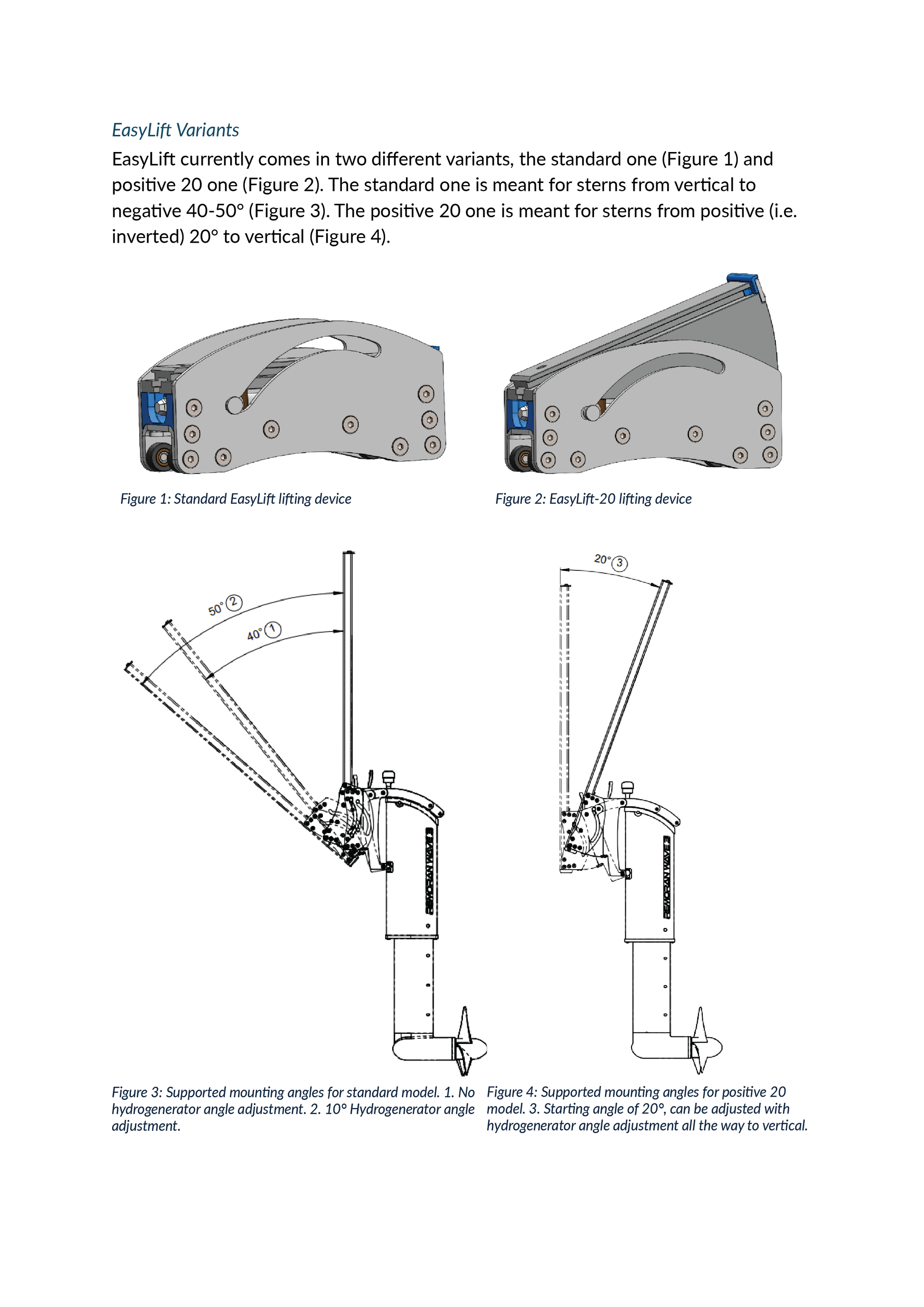 These variants allow EasyLift to be installed on a wide range of boat designs and stern geometries.